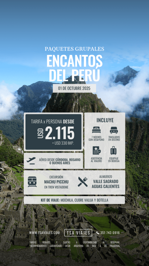 ✔ Aéreos directos a Lima desde Rosario o Buenos Aires