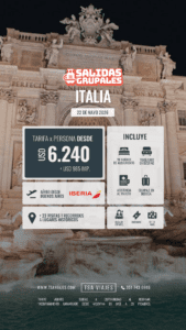 Milán · Sirmione · Verona · Venecia · Murano · Burano · Florencia · Cinque Terre · Pisa · Siena · San Gimignano · Chianti · Asís ·  Roma · Pompeya · Sorrento · Capri · Salerno · Costa Amalfitana · Pertosa Grutas · Paestum · Nápoles